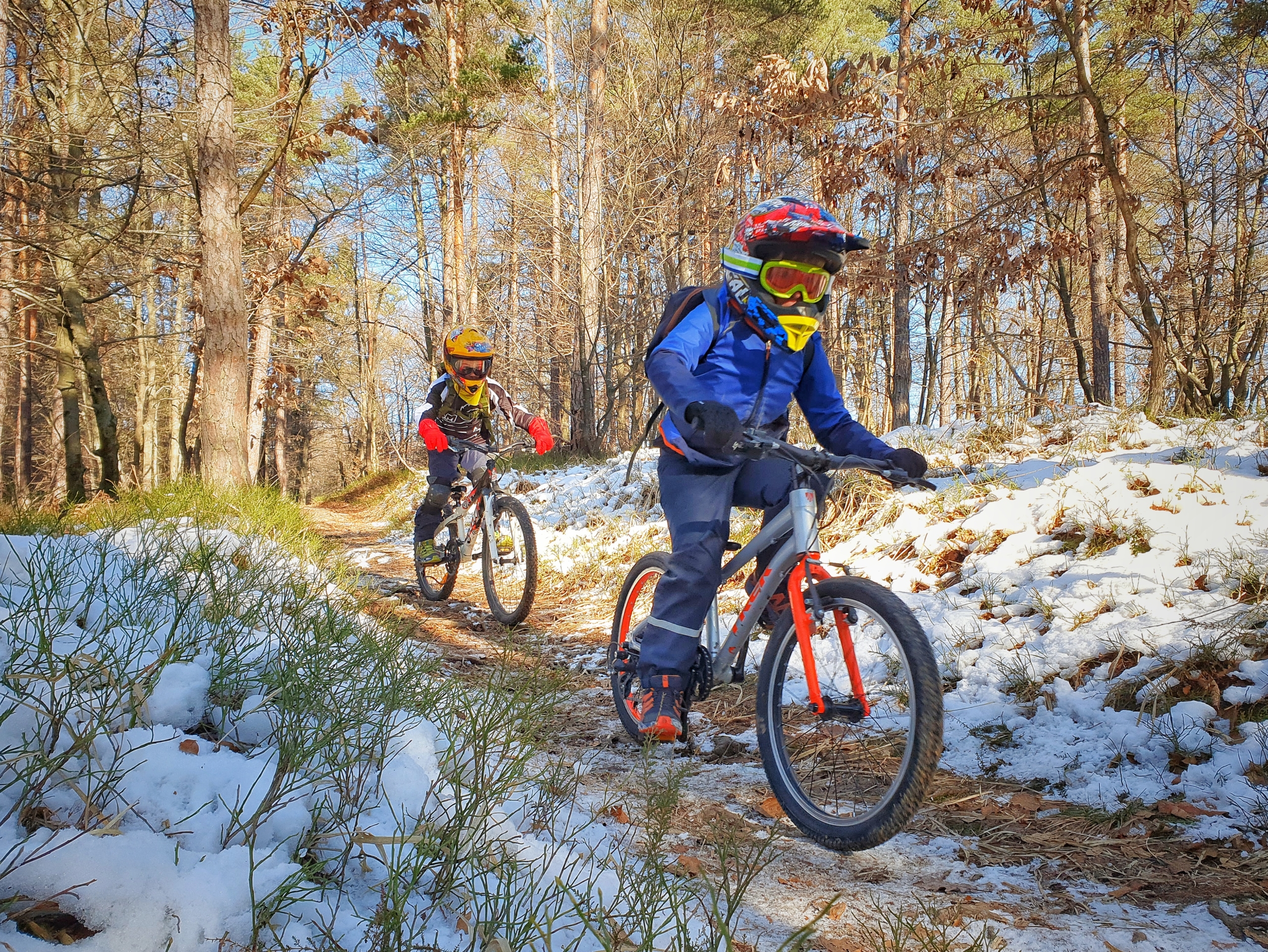 Že v četrtek je kazalo, da bo petek mrzel in sončen, zato smo se odločili, da izvedemo lažji vzpon na Klobuk za najmlajše. Trije nadobudneži so se nam pridružili na petkovi “kids only” furi. Zaradi zimskih razmer smo kmalu po začetku menjali kolesarske rokavice za smučarske in poskrbeli, da je vsem dovolj toplo. Glede na mrzlo vreme in hitro ogrevanje s kolesi je bila skrb za pravilno “klimatizacijo” ključna skozi celotno furo.