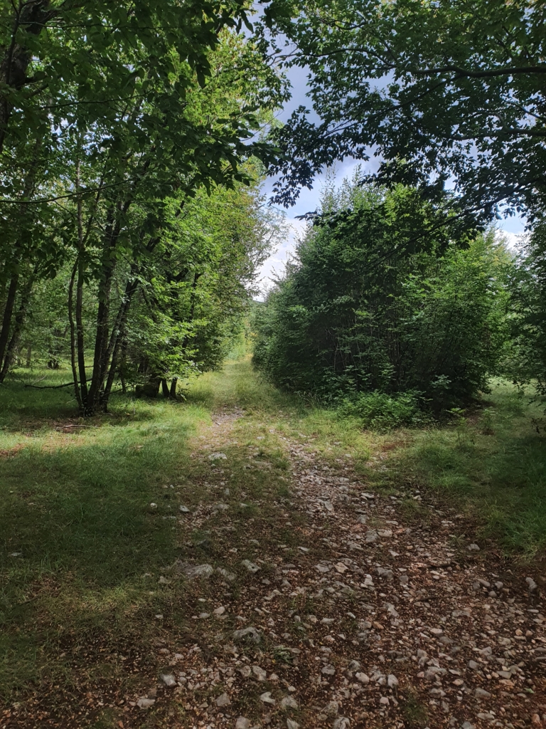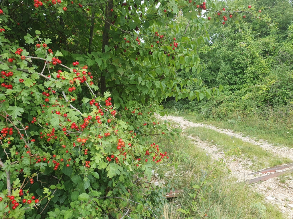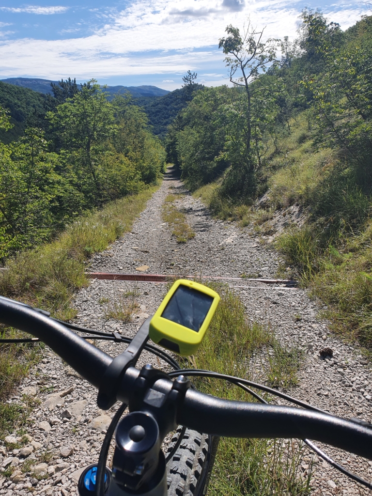 Na ovinku sredi vzpona se ustavim, da si malce oddahnem in si privoščim robidnice z bližnjega grmovja. Po sladki sadni pavzi osvežen, nadaljujem vožnjo. Prepoten in nekoliko zadihan dosežem nezavarovani prehod čez železnico na višini 500 m n.m., kjer se začnem spuščati proti Podgorju. Naslednji 3 km so čisti balzam, rahel spust ob železniški progi, po dobrem makadamu, skozi hladnejši gozd, ki diši po borovcih :). Na obrazu se mi riše nasmeh!